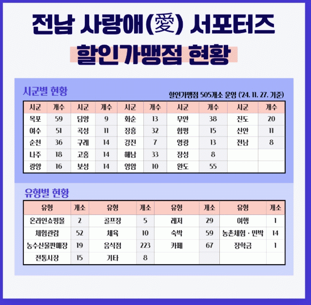 [¹Ìµð¾îÀü³² Á¦°¥´ëÁ¾ ±âÀÚ]Àü³² »ç¶û¾Ö(äñ) ¼Æ÷ÅÍÁî °¡ÀÔÀÚ°¡ 53¸¸ ¸íÀ» ³Ñ¾î¼± °¡¿îµ¥, ÇÒÀΰ¡¸ÍÁ¡ÀÌ 500°³¼Ò¸¦ µ¹ÆÄÇÏ¸ç ¼Æ÷ÅÍÁî ÇýÅÃÀÌ ´ëÆø È®´ëµÆ´Ù. Àü¶ó³²µµ¿¡ µû¸£¸é 28ÀÏ ÇöÀç Àü³² »ç¶û¾Ö ¼Æ÷ÅÍÁî ÇÒÀΰ¡¸ÍÁ¡Àº 505°³¼Ò´Ù¡¦