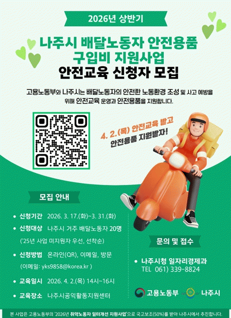 [¹Ìµð¾îÀü³² Á¦°¥´ëÁ¾ ±âÀÚ]Àü³² ³ªÁֽð¡ ±³Åë»ç°í À§Çè¿¡ ³ëÃâµÈ ¹è´Þ³ëµ¿ÀÚÀÇ ¾ÈÀüÀ» °ÈÇÏ°í »ç°í ¿¹¹æÀ» À§ÇÑ Áö¿ø¿¡ ³ª¼±´Ù. ³ªÁֽô ¹è´Þ³ëµ¿ÀÚÀÇ ¾ÈÀüÇÑ ³ëµ¿È¯°æ Á¶¼ºÀ» À§ÇØ ¹è´Þ³ëµ¿ÀÚ ¾ÈÀü¿ëǰ ±¸ÀÔºñ Áö¿ø»ç¾÷À» ÃßÁøÇÏ°í¡¦