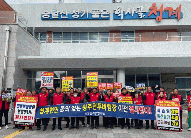 [¹Ìµð¾îÀü³² ±èÆÇ±¹ ±âÀÚ]¹«¾È±º û°è¸é ÀÌÀåÇùÀÇȸ´Â Áö³ 25ÀÏ Ã»°è¸é»ç¹«¼Ò ¾Õ¿¡¼ °¢ ¸¶À» ÀÌÀå 40¿© ¸íÀÌ Âü¿©ÇÑ °¡¿îµ¥ ±¤ÁÖ ÀüÅõºñÇàÀå ÀÌÀü ¹Ý´ë Ä·ÆäÀÎÀ» ÆîÃÆ´Ù. À̳¯ ÀÌÀåÇùÀÇȸ ȸ¿øµéÀº ±¤ÁÖ ÀüÅõºñÇàÀå ÀÌÀüÀ» Áö¿ª°æÁ¦¡¦