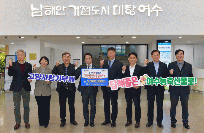 [¹Ìµð¾îÀü³² ÀüÇü¼º ±âÀÚ]¿©¼ö½Ã °íÇâ»ç¶û±âºÎÁ¦¿¡ ´ëÇÑ Çâ¿ìµéÀÇ °ü½É°ú Âü¿©°¡ ÀÕµû¸£°í ÀÖ´Ù. ¿©¼ö½Ã¿¡ µû¸£¸é NH³óÇù Àç°æ ¿©¼ö½ÃÇâ¿ìȸ¿ø 29¸íÀÌ °íÇâÀ» ÀÀ¿øÇÏ´Â ¸¶À½À» ´ã¾Æ ¸¶·ÃÇÑ °íÇâ»ç¶û±âºÎ±Ý 350¸¸ ¿øÀ» ½Ã¿¡ Àü´ÞÇß´Ù°í ¹à¡¦