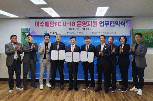 [¹Ìµð¾îÀü³² ÀüÇü¼º ±âÀÚ]¿©¼ö½Ã°¡ ¿©¼ö°ø¾÷°íµîÇб³, (»ç)¿©¼ö°ø°ø½ºÆ÷Ã÷Ŭ·´°ú À¯¼Ò³âÃ౸´Ü ¡®¿©¼öÇØ¾çFC U-18ÆÀ¡¯ ¼±¼öÀ°¼º Áö¿øÀ» À§ÇØ ¼ÕÀ» ¸ÂÀâ¾Ò´Ù. ½Ã¿¡ µû¸£¸é Áö³ 20ÀÏ Á¤±â¸í ½ÃÀå°ú ±è´ë¿ø ¿©¼ö°ø°í ±³Àå, ÀÌ¿ë°Ç ¿©¼ö°ø°ø¡¦
