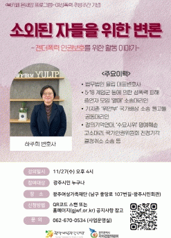 [¹Ìµð¾îÀü³² Á¦°¥´ëÁ¾ ±âÀÚ]±¤ÁÖ±¤¿ª½ÃÀÚÄ¡°æÂûÀ§¿øÈ¸´Â ±¤ÁÖ¿©¼º°¡Á·Àç´Ü°ú ÇÔ²² ¿À´Â 27ÀÏ ¿ÀÈÄ 4½Ã ³²±¸ ±¸µ¿ ±¤ÁֽùÎȸ°ü¿¡¼ Ư°À» ¿¬´Ù. ¿©¼ºÆø·ÂÃß¹æÁÖ°£(11¿ù25ÀÏ~12¿ù1ÀÏ)À» ¸Â¾Æ ¿¸®´Â À̹ø Ư°¿¡¼´Â ÇÏÁÖÈñ ¹ý¹«¹ýÀÎ À²¡¦