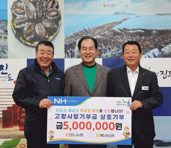 [¹Ìµð¾îÀü³² Á¦°¥´ëÁ¾ ±âÀÚ]Áøµµ±ºÀº Áö³ 10ÀÏ¿¡ Áøµµ³óÇù°ú ÇØ³²³óÇùÀÇ ¡®°íÇâ»ç¶û±âºÎ±Ý »óÈ£±âºÎ Àü´Þ½Ä¡¯À» ÁøÇàÇß´Ù. Áøµµ³óÇùÀº Áö³ ÇØ³²¹Ì³²ÃàÁ¦¿¡¼ ÇØ³²±º¿¡ °íÇâ»ç¶û±âºÎ±Ý 500¸¸ ¿øÀ» ±âºÎÇßÀ¸¸ç, À̹ø¿¡´Â ÇØ³²³óÇùÀÌ Áøµµ¡¦