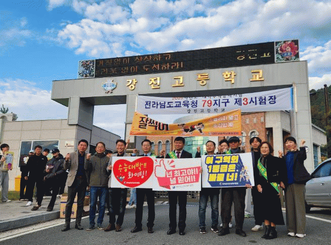 [¹Ìµð¾îÀü³² °í±Ô¼® ±âÀÚ]2025Çг⵵ ´ëÇмöÇдɷ½ÃÇè ´çÀÏ ¾ÆÄ§(14ÀÏ), °Áø ºÎ±º¼ö°¡ °Áø°íµîÇб³ Á¤¹®¿¡¼ ¾à 170¿© ¸íÀÇ ½ÃÇè ÀÀ½Ã»ýµéÀ» À§ÇÑ ÀÀ¿øÀÇ ¸Þ½ÃÁö¸¦ Àü´ÞÇß´Ù. ½ÃÇèÀå ÀÔ±¸¿¡¼´Â °Áø ºÎ±º¼ö»Ó ¾Æ´Ï¶ó °Áø±³À°Áö¿øÃ»¡¦