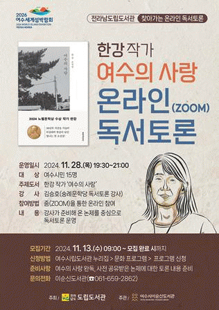 [¹Ìµð¾îÀü³² ÀüÇü¼º ±âÀÚ]¿©¼ö½Ã´Â ÇѰ ÀÛ°¡°¡ ¿©¼ö¿¡¼ °ÅÁÖÇϸç ÁýÇÊÇÑ Ã¹ ¼Ò¼³Áý ¡®¿©¼öÀÇ »ç¶û¡¯À» ÁÖÁ¦ µµ¼·Î ã¾Æ°¡´Â ¿Â¶óÀÎ µ¶¼Åä·ÐÀ» ¿î¿µÇÑ´Ù. ¡®Ã£¾Æ°¡´Â ¿Â¶óÀÎ µ¶¼Åä·Ð¡¯Àº Àü¶ó³²µµ¸³µµ¼°ü ÁÖÃÖ·Î ÇѰ ÀÛ°¡ÀÇ ³ëº§¹®¡¦