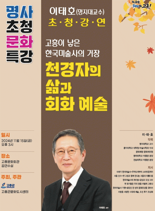 [¹Ìµð¾îÀü³² Á¦°¥´ëÁ¾ ±âÀÚ]°íÈﱺ°ú °íÈﱺ ¹®Èµµ½Ã¼¾ÅÍ´Â ¿À´Â 11¿ù 15ÀÏ ¿ÀÈÄ 3½Ã, °íÈï¹®Èȸ°ü ±è¿¬¼ö½Ç¿¡¼ ÀÌÅÂÈ£ ±³¼ö¸¦ ÃÊÃ»ÇØ ¡®°íÈïÀÌ ³ºÀº Çѱ¹ ¹Ì¼ú»çÀÇ °ÅÀå õ°æÀÚÀÇ »î°ú È¸È ¿¹¼ú¡¯À» ÁÖÁ¦·Î °¿¬À» °³ÃÖÇÑ´Ù°í ¹àÇû´Ù¡¦