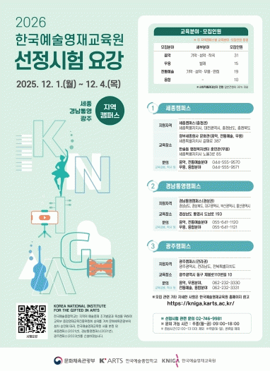 [¹Ìµð¾îÀü³² Á¦°¥´ëÁ¾ ±âÀÚ]±¤ÁÖ±¤¿ª½Ã´Â Çѱ¹¿¹¼úÁ¾ÇÕÇб³ ºÎ¼³±â°üÀÎ Çѱ¹¿¹¼ú¿µÀç±³À°¿ø ±¤ÁÖÄ·ÆÛ½ºÀÇ 2026³âµµ ±³À°»ýÀ» ¿À´Â 12¿ù 1ÀϺÎÅÍ 4ÀϱîÁö ¸ðÁýÇÑ´Ù°í 13ÀÏ ¹àÇû´Ù. Çѱ¹¿¹¼ú¿µÀç±³À°¿ø ±¤ÁÖÄ·ÆÛ½º´Â ¼öµµ±Ç¿¡ ÁýÁߵŠÀִ¡¦