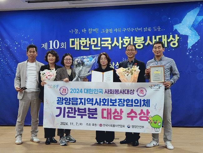 [¹Ìµð¾îÀü³² ÀÓ¼º¿Ï ±âÀÚ]±¤¾çÀ¾Áö¿ª»çȸº¸ÀåÇùÀÇü°¡ Áö³ 9¿ù 10ÀÏ Á¦25ȸ »çȸº¹ÁöÀÇ ³¯ ±â³ä½Ä¿¡¼ º¸°Çº¹ÁöºÎÀå°ü»ó ǥâÀ» ¹ÞÀº µ¥ À̾î 10¿ù¿¡µµ µÎ Â÷·ÊÀÇ ¼ö»óÀ¸·Î 2024³â »çȸº¹ÁöºÐ¾ß 3°ü¿ÕÀ» ´Þ¼ºÇß´Ù. ±¤¾ç½Ã´Â Áö³ 6Àϰú¡¦