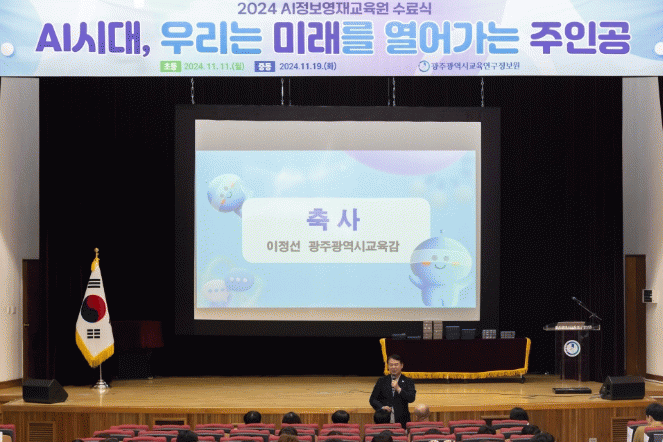 [¹Ìµð¾îÀü³² Á¦°¥´ëÁ¾ ±âÀÚ]±¤ÁÖ±¤¿ª½Ã±³À°¿¬±¸Á¤º¸¿ø ºÎ¼³ AIÁ¤º¸¿µÀç±³À°¿øÀº Áö³ 11ÀÏ º»¿ø ´ë°´ç¿¡¼ ¡®2024Çг⵵ AIÁ¤º¸¿µÀç±³À°¿ø Ãʵî°úÁ¤ ¼ö·á½Ä¡¯À» ¿¾ú´Ù. À̳¯ ¼ö·á½ÄÀº ÀÌÁ¤¼± ±³À°°¨, ±¤ÁÖ±³À°¿¬±¸Á¤º¸¿ø °íÀÎÀÚ ¿øÀ塦