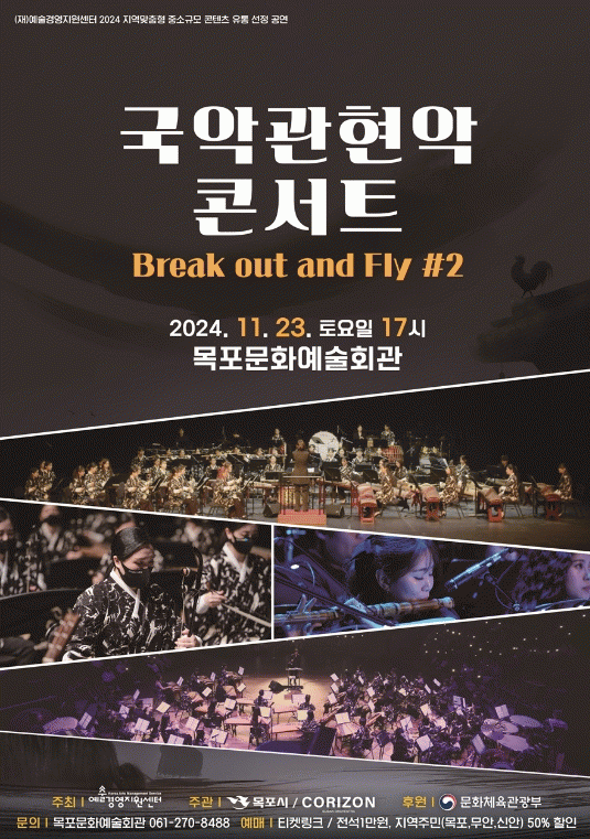 [¹Ìµð¾îÀü³² °í±Ô¼® ±âÀÚ]¸ñÆ÷½Ã°¡ ¿À´Â 23ÀÏ ¿ÀÈÄ 5½Ã ¸ñÆ÷¹®È¿¹¼úȸ°ü¿¡¼ ±¹¾Ç°üÇö¾Ç´Ü ÄÚ¶óÀÌÁðÀÇ Æ¯º° °ø¿¬À» °³ÃÖÇÑ´Ù. À̹ø °ø¿¬ÀÇ ÁÖÁ¦´Â ¡®Break out and Fly #2¡¯·Î, Ç츣¸¸ Çì¼¼ÀÇ ¼Ò¼³ ¡®µ¥¹Ì¾È¡¯ ¿¡ ³ª¿À´Â ¡°»õ´Â ¾ËÀ» ¡¦