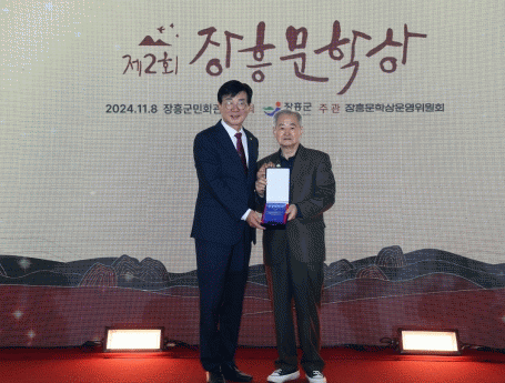 [¹Ìµð¾îÀü³² Á¦°¥´ëÁ¾ ±âÀÚ]Á¦2ȸ ÀåÈï¹®Çлó ½Ã»ó½ÄÀÌ 11¿ù 8ÀÏ ÀåÈï ±º¹Îȸ°ü¿¡¼ ¿·È´Ù. ¿ÃÇØ ÀåÈï¹®Çлó ¼ö»óÀÚ·Î ¼±Á¤µÈ À±Èï±æ ÀÛ°¡´Â »óÆÐ¿Í »ó±Ý 5õ¸¸¿øÀ» ¼ö»óÇß´Ù. À±Èï±æ ÀÛ°¡´Â ¼ö»ó ¼Ò°¨¿¡¼ ¡°ÀåÈïÀº ¹®ÇÐÀ¸·Î À§´ëÇÑ ¡¦