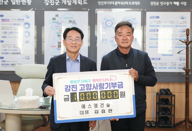 [¹Ìµð¾îÀü³² °í±Ô¼® ±âÀÚ]°Áø±ºÀº Áö³ 7ÀÏ ±èÈ¿°ü ¿¡½º¿¥°Ç¼³ ´ëÇ¥¿Í ±è½Â¹Î Àå¾ÖÀÎÁ¾ÇÕº¹Áö°ü »ç¹«±¹ÀåÀÌ °Áø ¹ßÀüÀ» À§ÇØ °íÇâ»ç¶û±âºÎ±Ý °¢ 100¸¸ ¿øÀ» ±âŹÇß´Ù°í 8ÀÏ ¹àÇû´Ù. ±è½Â¹Î »ç¹«±¹ÀåÀº Áö¿ª »çȸ º¹Áö Çâ»óÀ» À§ÇØ Áö¼Ó¡¦