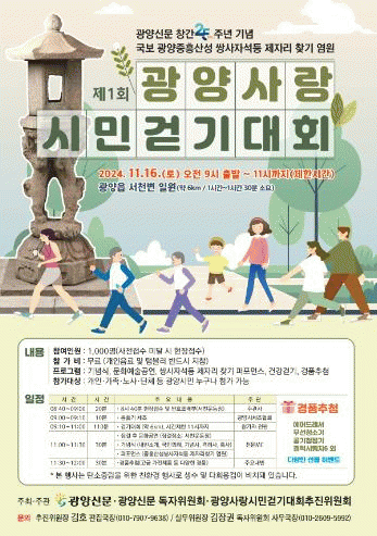 [¹Ìµð¾îÀü³² ÀÓ¼º¿Ï ±âÀÚ]±¤¾ç½Å¹®ÀÌ Ã¢°£ 25ÁÖ³âÀ» ¸Â¾Æ ½Ã¹Îµé°ú ÇÔ²²Çϴ Ưº°ÇÑ °È±â´ëȸ¸¦ °³ÃÖÇÑ´Ù. ±¤¾ç½Å¹®Àº ¿À´Â 11¿ù 16ÀÏ ¿ÀÀü 9½Ã ±¤¾çÀ¾ ¼Ãµ¿îµ¿Àå¿¡¼ ³²³à³ë¼Ò, °¡Á·, Ä£±¸, µ¿·á µî 1000¸íÀÌ Âü°¡ÇÑ °¡¿îµ¥ ¡®Á¦1ȸ ¡¦