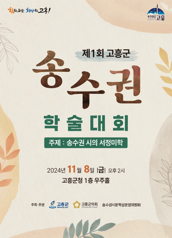 [¹Ìµð¾îÀü³² Á¦°¥´ëÁ¾ ±âÀÚ]°íÈﱺÀº ¡®Á¦1ȸ °íÈﱺ ¼Û¼ö±Ç Çмú´ëȸ¡¯¸¦ ¿À´Â 11¿ù 8ÀÏ ¿ÀÈÄ 2½Ã ±ºÃ» ¿ìÁÖȦ¿¡¼ °³ÃÖÇÑ´Ù°í ¹àÇû´Ù. ¼Û¼ö±Ç ½ÃÀÎÀº °íÈﱺ µÎ¿ø¸é Ãâ½ÅÀ¸·Î, Æò»ýÀ» ³ª°í ÀÚ¶õ ¡®³²µµ¡¯¸¦ ½ÃÀû »Ñ¸®·Î »ï¾Æ ±× Á¤¼¿Í¡¦