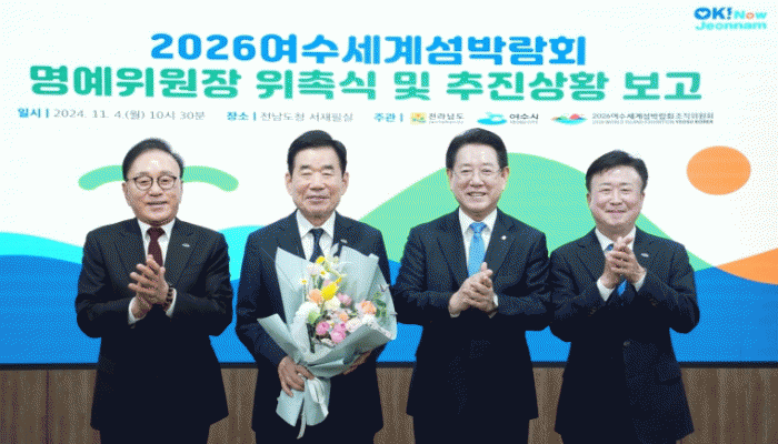 [¹Ìµð¾îÀü³² Á¦°¥´ëÁ¾ ±âÀÚ]2026¿©¼ö¼¼°è¼¶¹Ú¶÷ȸ Á¶Á÷À§¿øÈ¸(À§¿øÀå : ±è¿µ·Ï Àü¶ó³²µµÁö»ç, Á¤±â¸í ¿©¼ö½ÃÀå, ¹Ú¼ö°ü YC_TEC ´ëÇ¥)´Â 4ÀÏ Àü¶ó³²µµÃ» ¼ÀçÇʽǿ¡¼ ±èÁøÇ¥ Àü ±¹È¸ÀÇÀåÀ» ¸í¿¹À§¿øÀåÀ¸·Î À§ÃËÇß´Ù À̹ø À§Ã˽ÄÀº 2026¿©¡¦