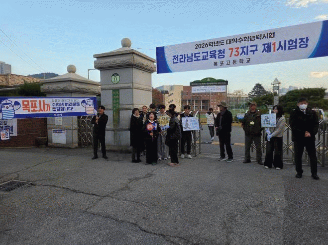 [¹Ìµð¾îÀü³² °í±Ô¼® ±âÀÚ]¸ñÆ÷½Ã´Â 11¿ù 13ÀÏ, 2026Çг⵵ ´ëÇмöÇдɷ½ÃÇèÀ» ¸Â¾Æ ¸ñÆ÷±³À°Áö¿øÃ»°ú ÇÔ²² °ü³» ÁÖ¿ä ½ÃÇèÀå¿¡¼ ÇÕµ¿ ÀÀ¿øÀ» ÆîÃÆ´Ù. À̹ø ÀÀ¿øÀº Áö¿ª ±³À°°øµ¿Ã¼°¡ ÇÔ²² ¼öÇè»ýÀ» °Ý·ÁÇϰí, ¾ÈÀüÇÏ°í ¾ÈÁ¤µÈ ½ÃÇè ȯ¡¦