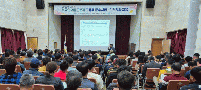 [¹Ìµð¾îÀü³² Á¦°¥´ëÁ¾ ±âÀÚ]Àü¶ó³²µµ ³ªÁֽô Áö³´Þ 25ÀÏ ³ªÁֽóó¾÷±â¼ú¼¾ÅÍ¿¡¼ ¿Ü±¹ÀÎ °èÀý±Ù·ÎÀÚ °í¿ë³ó°¡ 200¸íÀ» ´ë»óÀ¸·Î °í¿ëÁÖ Áؼö»çÇ× ¹× ÀÎ±Ç°È ±³À°À» ½Ç½ÃÇß´Ù°í 1ÀÏ ¹àÇû´Ù. À̹ø ±³À°Àº ³ó°¡ Áؼö»çÇ×, ±Ù·ÎÀÚ ÀÔ±¹¡¦