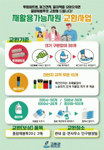 [¹Ìµð¾îÀü³² Á¦°¥´ëÁ¾ ±âÀÚ]°íÈﱺÀº ¿À´Â 11¿ù 4ÀϺÎÅÍ ÆóÀÚ¿øÀÇ ÀçȰ¿ë °¡Ä¡¸¦ ³ôÀ̱â À§ÇØ ÀçȰ¿ë°¡´ÉÀÚ¿øÀ» Á¾·®Á¦ºÀÅõ·Î ±³È¯ÇØ ÁÖ´Â »ç¾÷À» ½ÃÇàÇÑ´Ù°í ¹àÇû´Ù. ÀçȰ¿ë°¡´ÉÀÚ¿ø ±³È¯»ç¾÷Àº ÀÏ»ó»ýȰ¿¡¼ »ç¿ë ÈÄ ¹ö·ÁÁö´Â ÆóÆäÆ®º´¡¦
