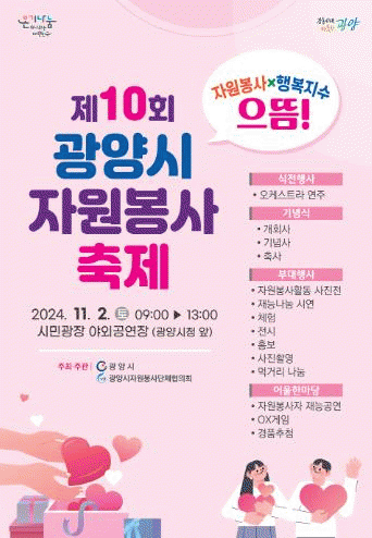 [¹Ìµð¾îÀü³² ÀÓ¼º¿Ï ±âÀÚ]±¤¾ç½Ã´Â 11¿ù 2ÀÏ ±¤¾ç½Ã¹Î±¤Àå ¾ß¿Ü°ø¿¬Àå¿¡¼ ¡®Á¦10ȸ ±¤¾ç½Ã ÀÚ¿øºÀ»ç ÃàÁ¦¡¯°¡ °³ÃÖµÈ´Ù°í ¾Ë·È´Ù. ±¤¾ç½ÃÀÚ¿øºÀ»ç´ÜüÇùÀÇȸ ÁÖ°üÀ¸·Î ¿¸®´Â À̹ø Çà»çÀÇ ÁÖÁ¦´Â ¡®ÀÚ¿øºÀ»ç À¸¶ä Çູ Áö¼ö À¸¶ä ±¤¾ç½Ã¡¦