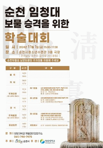 [¹Ìµð¾îÀü³² ÀÓ¼º¿Ï ±âÀÚ]¼øÃµ½Ã°¡ ¿À´Â 11¿ù 1ÀÏ ¿ÀÈÄ 3½Ã ¼øÃµ½Ãû¼Ò³â¼ö·Ã°ü¿¡¼ ¡®¼øÃµ ÀÓû´ë º¸¹° ½Â°ÝÀ» À§ÇÑ Çмú´ëȸ¡¯¸¦ °³ÃÖÇÑ´Ù. ¼øÃµ ÀÓû´ë´Â ¼øÃµºÎ»ç ÀÌÁ¤ÀÌ ¼øÃµ¿¡¼ ±Í¾ç»ìÀ̸¦ Çß´ø ±è±²Çʰú Á¶À§¸¦ Ã߸ðÇϱâ À§ÇØ 1¡¦