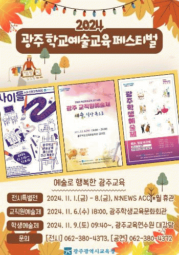 [¹Ìµð¾îÀü³² Á¦°¥´ëÁ¾ ±âÀÚ]±¤Áֽñ³À°Ã»Àº ¿À´Â 11¿ù 1ÀϺÎÅÍ 9ÀÏ ¡®2024 Çб³¿¹¼ú±³À° Æä½ºÆ¼¹ú¡¯À» °³ÃÖÇÑ´Ù. À̹ø Æä½ºÆ¼¹úÀº ¡®¿¹¼ú ÀÏ»ó ¼ÓÀ¸·Î¡¯¸¦ ÁÖÁ¦·Î ±¹¸³¾Æ½Ã¾Æ¹®ÈÀü´ç, ±¤ÁÖÇлý±³À°¹®Èȸ°ü, ±¤ÁÖ±³À°¿¬¼ö¿ø µî¿¡¼ Áø¡¦
