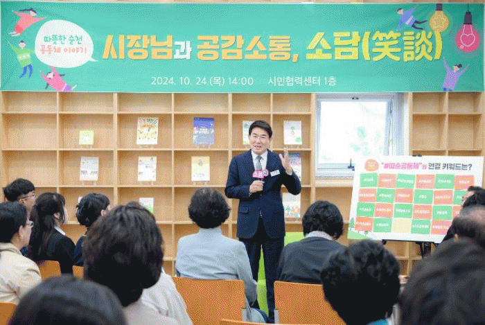 [¹Ìµð¾îÀü³² ÀÓ¼º¿Ï ±âÀÚ]¼øÃµ½Ã´Â Áö³ 24ÀÏ ¼øÃµ½Ã ½Ã¹ÎÇù·Â¼¾ÅÍ 1Ãþ¿¡¼ 50¸íÀÇ ½Ã¹Îµé°ú ÇÔ²² ¡°°øµ¿Ã¼¿ÍÀÇ °ø°¨¼ÒÅë, ¼Ò´ã(áÅÓÈ)¡±À» °³ÃÖÇß´Ù°í ¹àÇû´Ù. À̹ø Çà»ç¿¡´Â ½ÃÀå´Ô°úÀÇ ¼ÒÅëÀ» À§ÇØ ¸ðÀÎ 20°³ÀÇ °øµ¿Ã¼°¡ Âü¿©ÇÏ¿© °¢¡¦