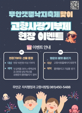 [¹Ìµð¾îÀü³² ±èÆÇ±¹ ±âÀÚ]Àü³² ¹«¾È±ºÀº ¿À´Â 26ÀϺÎÅÍ 27ÀϱîÁö ¹«¾ÈÀ¾ »¹³«Áö°Å¸® ¹× Áß¾Ó·Î ÀÏ¿ø¿¡¼ °³ÃֵǴ¡®2024 ¹«¾È°¹¹ú³«ÁöÃàÁ¦¡¯¿Í ¿¬°èÇÏ¿© °íÇâ»ç¶û±âºÎÁ¦ ÇöÀå À̺¥Æ®¸¦ ¿î¿µÇÑ´Ù. À̹ø À̺¥Æ®´Â ÃàÁ¦ÀåÀ» ¹æ¹®ÇÑ °ü±¤°´µé¡¦