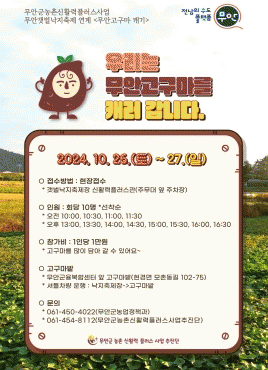 [¹Ìµð¾îÀü³² ±èÆÇ±¹ ±âÀÚ]¹«¾È±º ¹«¾ÈÀ¾ »õ¸¶À»ÇùÀÇȸ´Â ¿À´Â 26ÀϺÎÅÍ 27ÀϱîÁö ¿¸®´Â ¡®2024³â ¹«¾È°¹¹ú³«ÁöÃàÁ¦¡¯¸¦ ¸ÂÀÌÇÏ¿© ´ëû¼Ò¸¦ ½Ç½ÃÇß´Ù. À̹ø Ȱµ¿Àº Áö¿ª Áֹεé°ú °ü±¤°´µéÀÌ ±ú²ýÇϰí ÄèÀûÇÑ È¯°æ¿¡¼ ÃàÁ¦¸¦ Áñ±æ ¼ö ¡¦
