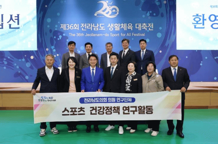 [¹Ìµð¾îÀü³² Á¦°¥´ëÁ¾ ±âÀÚ]Àü¶ó³²µµÀÇȸ ÀÇ¿ø ¿¬±¸´ÜüÀÎ ¡®½ºÆ÷Ã÷ °Ç°Á¤Ã¥ ¿¬±¸È¸¡¯ ÀÇ¿øµéÀÌ Áö³ 10¿ù 18ÀÏ ¿Ïµµ °ø¼³¿îµ¿Àå¿¡¼ °³ÃÖµÈ Á¦36ȸ Àü¶ó³²µµ»ýȰüÀ°´ëÃàÀü °³È¸½Ä¿¡ Âü¼®ÇÏ¿© ¼±¼ö´ÜÀ» °Ý·ÁÇß´Ù. ¡®Á¦36ȸ Àü¶ó³²µµ »ý¡¦