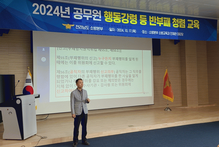 [¹Ìµð¾îÀü³² Á¦°¥´ëÁ¾ ±âÀÚ]Àü³²¼Ò¹æº»ºÎ´Â 17ÀÏ Àü³²¼Ò¹æÇб³ ÀÎÀç°ü¿¡¼ 2024³â ¼Ò¹æ°ø¹«¿ø ½ÂÁøÀÚ ¹× ½Å±ÔÀÓ¿ë °øÁ÷ÀÚ 140¿© ¸íÀ» ´ë»óÀ¸·Î °ø¹«¿ø Çൿ°·É µî û·Å ÁýÇÕ±³À°À» ½Ç½ÃÇß´Ù°í ¹àÇû´Ù. °ÀÇ´Â ±¹¹Î±ÇÀÍÀ§¿øÈ¸ û·Å¿¬¼ö¡¦