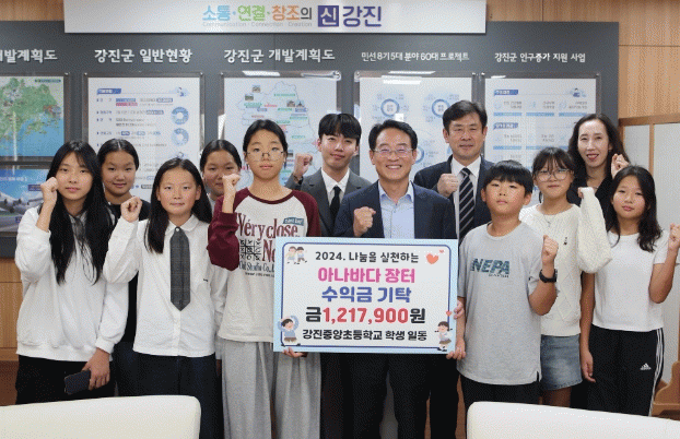 [¹Ìµð¾îÀü³² °í±Ô¼® ±âÀÚ]Áö³ 16ÀÏ, °ÁøÁß¾ÓÃʵîÇб³ Çлýȸ(ȸÀå 6³â ±è¼Àº)¿¡¼´Â Àü±³»ýÀÌ ¾Æ³ª¹Ù´Ù ÀåÅ͸¦ ¿¾î ¾òÀº ¼öÀÍ±Ý 121¸¸ 7,900¿øÀ» °Áø±º¿¡ ±âŹÇß´Ù. °ÁøÁß¾ÓÃʵîÇб³(±³Àå ¼Á¾±â)¿¡¼´Â ³ª´®°ú ź¼ÒÁ߸³À» ½ÇõÇÏ¡¦