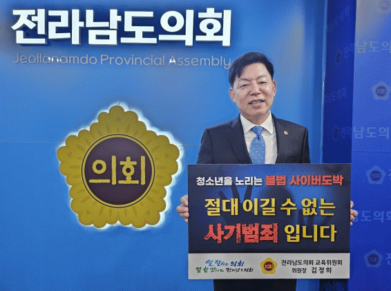 [¹Ìµð¾îÀü³² Á¦°¥´ëÁ¾ ±âÀÚ]Àü¶ó³²µµÀÇȸ ±èÁ¤Èñ ±³À°À§¿øÀå(´õºÒ¾î¹ÎÁÖ´ç, ¼øÃµ3)ÀÌ 10¿ù 16ÀÏ ¡®Ã»¼Ò³â µµ¹Ú ±ÙÀý ¸±·¹ÀÌ Ã§¸°Áö¡¯¿¡ µ¿ÂüÇß´Ù. ÇØ´ç 縰Áö´Â û¼Ò³âµé »çÀÌ¿¡¼ ±Þ¼Óµµ·Î È®»êµÇ°í ÀÖ´Â ºÒ¹ý »çÀ̹ö µµ¹ÚÀÇ À§Ç輺À»¡¦