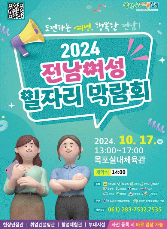 [¹Ìµð¾îÀü³² °í±Ô¼® ±âÀÚ]2024³â Àü³²¿©¼º ÀÏÀÚ¸®¹Ú¶÷ȸ°¡ ¿À´Â 17ÀÏ ¿ÀÈÄ 1½ÃºÎÅÍ 5½Ã±îÁö ¡®µµÀüÇÏ´Â ¿©¼º, ÇູÇÑ Àü³²¡¯À» ½½·Î°Ç(Ç¥¾î)À¸·Î ¸ñÆ÷½Ç³»Ã¼À°°ü¿¡¼ °³ÃֵȴÙ. À̹ø ÀÏÀÚ¸®¹Ú¶÷ȸ´Â Ã롤â¾÷À» Èñ¸ÁÇÏ´Â ¿©¼ºµé¿¡°Ô Áö¡¦