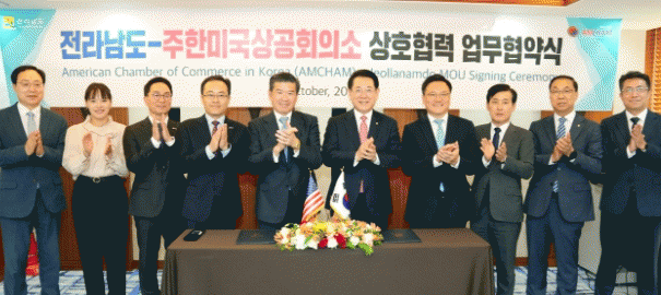 [¹Ìµð¾îÀü³² Á¦°¥´ëÁ¾ ±âÀÚ]Àü¶ó³²µµ´Â 11ÀÏ ¼¿ï ÄÚ¸®¾Æ³ªÈ£ÅÚ¿¡¼ ÁÖÇѹ̱¹»ó°øÈ¸ÀǼÒ(AMCHAM)¿Í ¾÷¹«Çù¾àÀ» ÇÏ°í °æÁ¦Çù·Â °È¿Í ÅõÀÚÀ¯Ä¡ Ȱ¼ºÈ¸¦ À§ÇØ Çù·ÂÇϱâ·Î Çß´Ù. ¾÷¹«Çù¾à½Ä¿¡´Â ±è¿µ·Ï Àü³²µµÁö»ç, Á¦ÀÓ½º ±è ÁÖÇѹ̱¹»ó¡¦