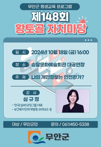 [¹Ìµð¾îÀü³² ±èÆÇ±¹ ±âÀÚ]Àü³² ¹«¾È±ºÀº ¿À´Â 18ÀÏ ½Â´Þ¹®È¿¹¼úȸ°ü¿¡¼ ½É±ÔÁ¤ Çѱ¹(½Ç¹ö)ÄÚĪ±×·ì ´ëÇ¥¸¦ ÃÊûÇÏ¿© ¡®³ªÀÇ °³ÀÎÁ¤º¸´Â ¾ÈÀüÇѰ¡?¡¯¶ó´Â ÁÖÁ¦·Î Á¦148ȸ ȲÅä°ñ ÀÚÄ¡¸¶´çÀ» °³ÃÖÇÑ´Ù. °¿¬ÀÚ·Î ÃÊûµÈ ½É±ÔÁ¤ ´ëÇ¥´Â ¼¡¦