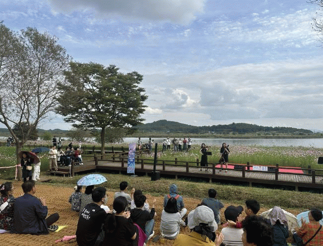 [¹Ìµð¾îÀü³² ±èÆÇ±¹ ±âÀÚ]Àü³² ¹«¾È±ºÀº Áö³ 5Àϰú 9ÀÏ ¸ùź¸é ½Ä¿µÁ¤¿¡¼ ÄÚ½º¸ð½º°¡ ¸¸°³ÇÑ Ç³°æÀ» ¹è°æÀ¸·Î Áö¿ªÁֹΰú °ü±¤°´ÀÌ ÇÔ²² Áñ±æ ¼ö ÀÖ´Â °Å¸®¿¹¼ú °ø¿¬À» ÆîÃÆ´Ù. °ø¿¬Àº ¾à 6õ Æò ¸éÀûÀÇ ±¤È°ÇÑ ½Ä¿µÁ¤¿¡¼ Åë±âŸ, ´ë¡¦