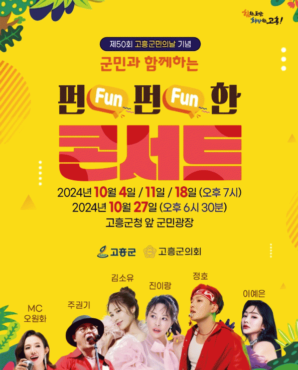 [¹Ìµð¾îÀü³² Á¦°¥´ëÁ¾ ±âÀÚ]°íÈﱺÀº Á¦50ȸ °íÈﱺ¹ÎÀÇ ³¯ ±â³ä ¡®ÆÝ(FUN)ÆÝ(FUN)ÇÑ ÄܼƮ¡¯ µÎ ¹øÂ° °ø¿¬À» 11ÀÏ ±ºÃ» ¾Õ ±º¹Î±¤Àå¿¡¼ °³ÃÖÇÑ´Ù°í ¹àÇû´Ù. ¡®°íÈﱺ¹ÎÀÇ ³¯ Àü¾ßÁ¦¡¯¸¦ ´ëÃ¼ÇØ ¿¸®´Â À̹ø °ø¿¬Àº Áö³ 4ÀÏ¿¡ ÀÌ¾î µÎ¡¦