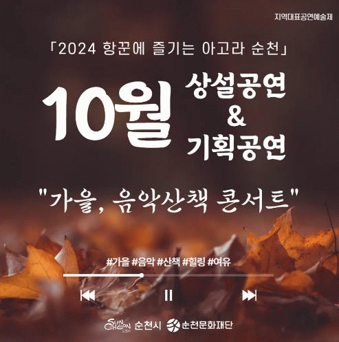[¹Ìµð¾îÀü³² ÀÓ¼º¿Ï ±âÀÚ]¼øÃµ¹®ÈÀç´ÜÀº ¡®2024 Çײۿ¡ Áñ±â´Â ¾Æ°í¶ó ¼øÃµ¡¯ 10¿ù »ó¼³ ¹× ±âȹ°ø¿¬À» ¼øÃµ½Ã ÀÏ¿ø¿¡¼ ÁøÇàÇÑ´Ù. ¡®2024 ¾Æ°í¶ó ¼øÃµ¡¯Àº '°¡À», À½¾Ç»êÃ¥ ÄܼƮ'¸¦ ÁÖÁ¦·Î °¡À»À» ¸¸³£ÇÒ ¼ö ÀÖ´Â ´Ùä·Î¿î °ø¿¬À» Áø¡¦