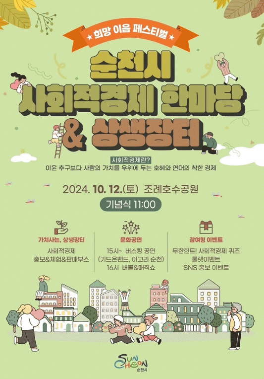 [¹Ìµð¾îÀü³² ÀÓ¼º¿Ï ±âÀÚ]¼øÃµ½Ã´Â ¿À´Â 12ÀÏ Á¶·ÊÈ£¼ö°ø¿ø ±¤Àå ÀÏ¿ø¿¡¼ ¡®Èñ¸Á ÀÌÀ½ Æä½ºÆ¼¹ú¡¯À» ÁÖÁ¦·Î ¡®2024 ¼øÃµ½Ã »çȸÀû°æÁ¦ ÇѸ¶´ç¡¯À» °³ÃÖÇÑ´Ù°í ¹àÇû´Ù. À̹ø »çȸÀû°æÁ¦ ÇѸ¶´çÀº ½Ã¹Îµé¿¡°Ô »çȸÀû°æÁ¦ °³³äÀ» ¾Ë¸®°í, ¡¦