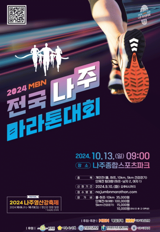 [¹Ìµð¾îÀü³² Á¦°¥´ëÁ¾ ±âÀÚ]¡®2024 MBN Àü±¹ ³ªÁÖ ¸¶¶óÅæ´ëȸ¡¯°¡ 10¿ù 13ÀÏ ³ªÁÖÁ¾ÇÕ½ºÆ÷Ã÷ÆÄÅ© ¹× ¿µ»ê° °º¯µµ·Î¿¡¼ °³ÃֵȴÙ. MBN, ¸ÅÀϰæÁ¦, ³ªÁֽà À°»ó¿¬¸ÍÀÌ ÁÖÃÖ¡¤ÁÖ°üÇÏ°í ³ªÁÖ½Ã, ³ªÁÖ½ÃÀÇȸ, Àü¶ó³²µµÃ¼À°È¸, Àü¶ó³²µµ±³¡¦