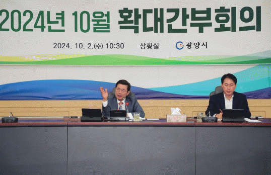 [¹Ìµð¾îÀü³² ÀÓ¼º¿Ï ±âÀÚ]±¤¾ç½Ã´Â Áö³ 2ÀÏ ½Ãû »óȲ½Ç¿¡¼ ½Ç¡¤´Ü¡¤°úÀå ÀÌ»ó °£ºÎ °ø¹«¿øÀÌ Âü¼®ÇÑ °¡¿îµ¥ 10¿ù È®´ë°£ºÎȸÀǰ¡ °³ÃÖµÆ´Ù°í ¹àÇû´Ù. °£ºÎȸÀǸ¦ ÁÖÀçÇÑ Á¤ÀÎÈ ±¤¾ç½ÃÀåÀº ¸ÕÀú 2025³â ±¹µµºñ È®º¸ ¸·¹ÙÁö ÃÑ·Â ´ëÀÀ¡¦