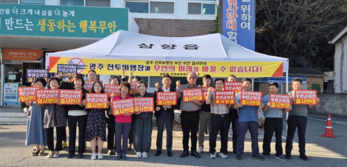 [¹Ìµð¾îÀü³² ±èÆÇ±¹ ±âÀÚ]¹«¾È±º »ïÇâÀ¾ Áö¿ª´ëÃ¥À§¿øÈ¸´Â Áö³ 9¿ù 30ÀÏ »ïÇâÀ¾»ç¹«¼Ò ȸÀǽǿ¡¼ ±¤ÁÖ ±º °øÇ× ¹«¾È ÀÌÀü ¹Ý´ë Ȱµ¿°ú ´õºÒ¾î ±È±â´ëȸ Ȱµ¿À» À§ÇÑ ±ä±Þ ȸÀǸ¦ ¿¾ú´Ù. À̳¯ ȸ¿ø 40¿© ¸íÀº »ïÇâÀ¾»ç¹«¼Ò ¾Õ¿¡ ±º °ø¡¦