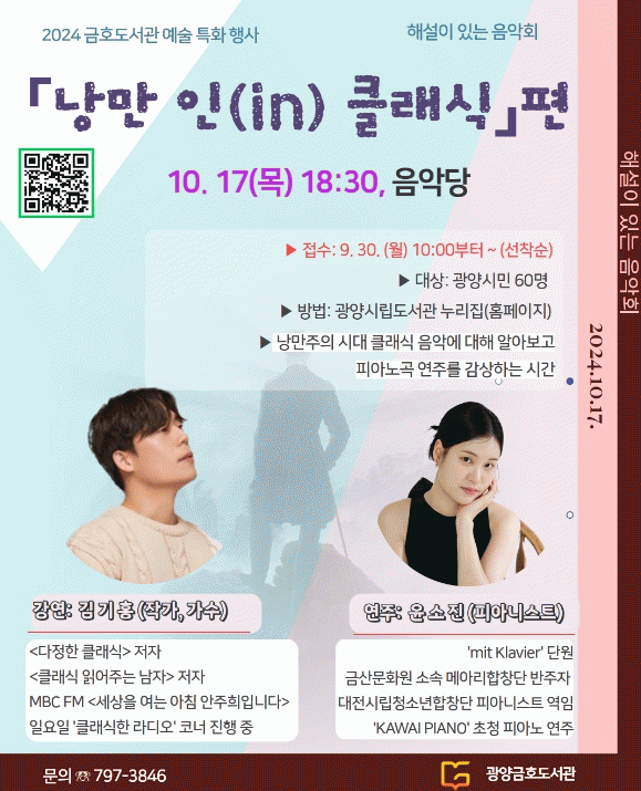 [¹Ìµð¾îÀü³² ÀÓ¼º¿Ï ±âÀÚ]±¤¾ç½Ã´Â ¿À´Â 17ÀÏ ¿ÀÈÄ 6½Ã 30ºÐ ±¤¾ç±ÝÈ£µµ¼°ü¿¡¼ °¡À»À» ¸ÂÀÌÇØ ±¤¾ç½Ã¹ÎÀ» ´ë»óÀ¸·Î'ÇØ¼³ÀÌ ÀÖ´Â À½¾Çȸ'¸¦ ¿î¿µÇÑ´Ù°í ¾Ë·È´Ù. 'ÇØ¼³ÀÌ ÀÖ´Â À½¾Çȸ'´Â Áö¿ª¿¡¼ ½±°Ô Á¢Çϱ⠾î·Á¿î Àü¹® À½¾ÇÀΰú °ø¿¬¡¦