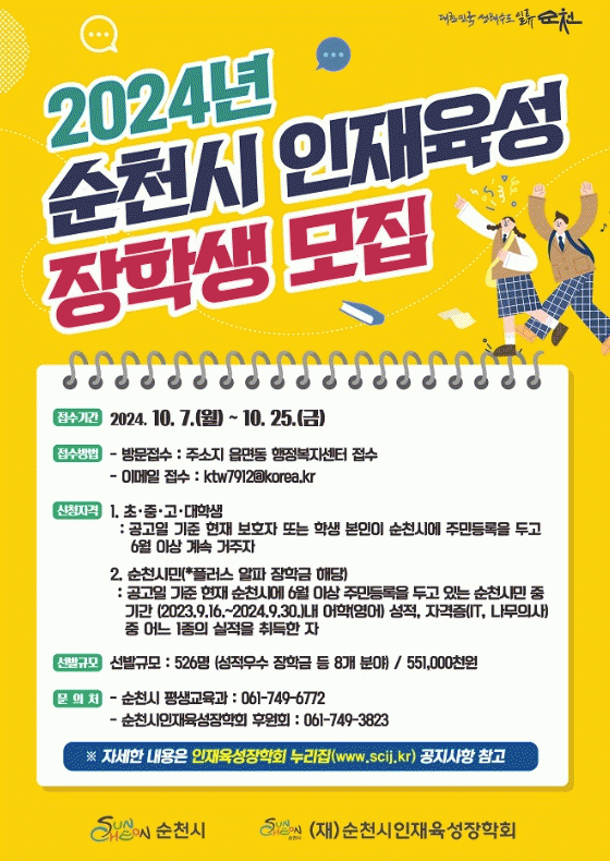 [¹Ìµð¾îÀü³² ÀÓ¼º¿Ï ±âÀÚ]Àç´Ü¹ýÀÎ ¼øÃµ½ÃÀÎÀçÀ°¼ºÀåÇÐȸ(ÀÌ»çÀå ³ë°ü±Ô)´Â ¿À´Â 7ÀϺÎÅÍ 25ÀϱîÁö 2024³â ÀåÇлý ½Åû Á¢¼ö¸¦ ÇÑ´Ù°í ¹àÇû´Ù. ÃÊ¡¤Áß¡¤°í¡¤´ëÇлý ¹× ½Ã¹ÎÀ» Æ÷ÇÔÇÏ¿© ÃÑ 526¸íÀ» ¼±¹ßÇϰí ÀåÇбÝÀ¸·Î 5¾ï 5õ 1¹é¸¸¿øÀ»¡¦