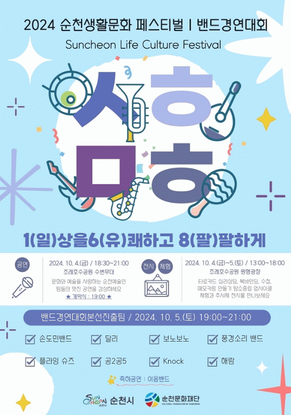 [¹Ìµð¾îÀü³² ÀÓ¼º¿Ï ±âÀÚ](Àç)¼øÃµ¹®ÈÀç´Ü(ÀÌ»çÀå ³ë°ü±Ô)Àº »ýȰ¹®È´Üü Ȱ¼ºÈ¿Í ½Ã¹ÎµéÀÇ »ýȰ¹®È ÇâÀ¯¸¦ À§ÇØ ¿À´Â 4ÀϺÎÅÍ 5ÀϱîÁö ¾çÀϰ£ Á¶·ÊÈ£¼ö°ø¿ø¿¡¼ Á¦5ȸ ¼øÃµ»ýȰ¹®ÈÆä½ºÆ¼¹ú ¹× »ýȰ¹®È¹êµå°æ¿¬´ëȸ¸¦ °³ÃÖÇÑ´Ù. ÀÌ¡¦