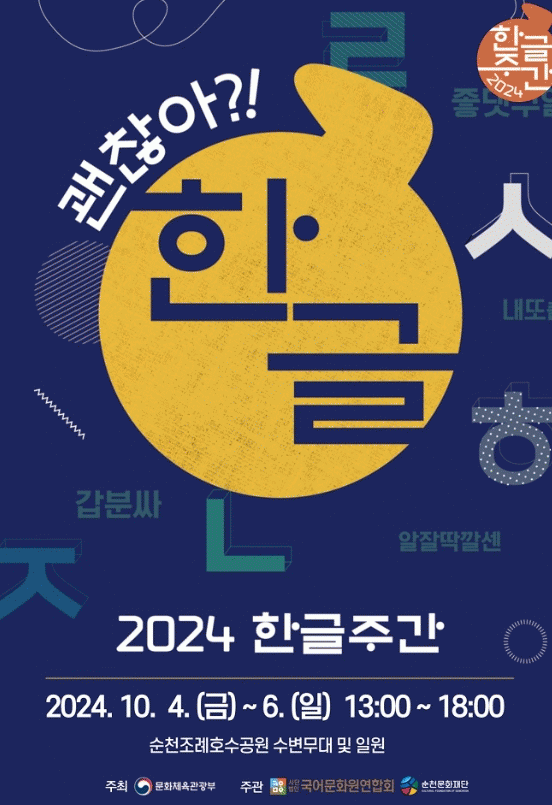 [¹Ìµð¾îÀü³² ÀÓ¼º¿Ï ±âÀÚ](Àç)¼øÃµ¹®ÈÀç´Ü(ÀÌ»çÀå ³ë°ü±Ô)Àº Á¦578µ¹ Çѱ۳¯À» ±â³äÇØ ¿À´Â 4ÀϺÎÅÍ 6ÀϱîÁö Á¶·ÊÈ£¼ö°ø¿ø¿¡¼ ÇѱÛÀÇ ¼ÒÁßÇÔÀ» ¿¹¼úÀ» ÅëÇØ Àç¹ß°ßÇϰíÀÚ ¡®±¦Âú¾Æ?! Çѱۡ¯À̶ó´Â ÁÖÁ¦·Î ¹®ÈÇà»ç¸¦ °³ÃÖÇÑ´Ù. À̹ø Çࡦ