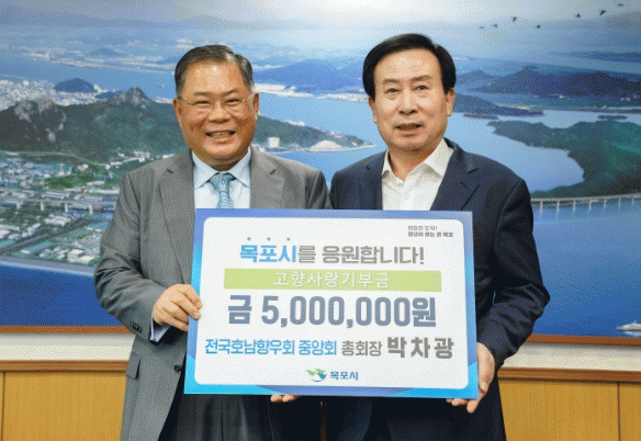 [¹Ìµð¾îÀü³² °í±Ô¼® ±âÀÚ]Àü±¹È£³²Çâ¿ìȸÁß¾Óȸ ¹ÚÂ÷±¤ ÃÑȸÀåÀÌ Áö³ ´Þ 30ÀÏ Á¦62ȸ ¸ñÆ÷½Ã¹ÎÀÇ ³¯À» ±â³äÇÏ¿© °íÇâ»ç¶û±âºÎ±Ý 500¸¸¿øÀ» ±âŹÇÏ¸ç ¸ñÆ÷ °íÇâ»ç¶û±âºÎÁ¦¿¡ µ¿ÂüÇß´Ù. ¹ÚÂ÷±¤ ÃÑȸÀåÀº ½Å¾È±º Ãâ»ýÀ¸·Î ¸ñÆ÷¿¡¼ ÇÐâ½Ã¡¦