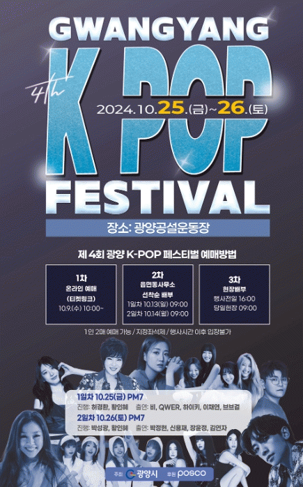 [¹Ìµð¾îÀü³² ÀÓ¼º¿Ï ±âÀÚ]±¤¾ç½Ã°¡ ¿À´Â 25Àϰú 26ÀÏ ¾çÀϰ£ ±¤¾ç°ø¼³¿îµ¿Àå ÀÏ¿ø¿¡¼ °³ÃֵǴ ¡®Á¦4ȸ ±¤¾ç K-POP Æä½ºÆ¼¹ú¡¯ ÀÔÀå±Ç ¹èºÎ °èȹÀ» ¹ßÇ¥Çß´Ù. Æä½ºÆ¼¹úÀÇ ÀÔÀå±Ç ¹èºÎ´Â ÃÑ 4Â÷¿¡ °ÉÃÄ ÁøÇàµÇ¸ç 1ÀÎ ÃÖ´ë 2¸Å±îÁö ¹«·á¡¦