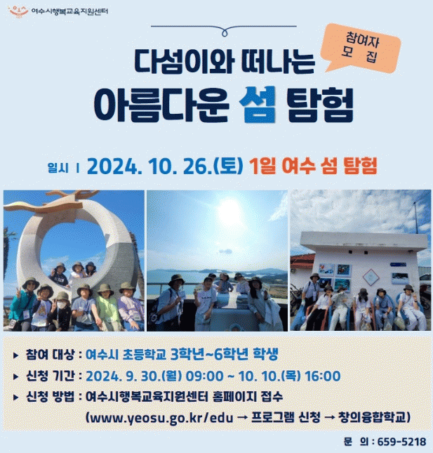 [¹Ìµð¾îÀü³² ÀüÇü¼º ±âÀÚ]¿©¼ö½Ã´Â ¿À´Â 10¿ù 26ÀÏ ÃʵîÇб³ 3 ºÎÅÍ 6Çгâ ÇлýÀ» ´ë»óÀ¸·Î ¡®´Ù¼¶ÀÌ¿Í ¶°³ª´Â ¾Æ¸§´Ù¿î ¼¶Å½Ç衯 ÇÁ·Î±×·¥À» ¿î¿µÇÑ´Ù. À̹ø ÇÁ·Î±×·¥Àº ¿©¼öÀÇ ¼¶ÀÇ ¿ª»ç, ¼¶¸¶À» ¹®È¸¦ Á÷Á¢ °æÇèÇØ º¸´Â üÇè ÇÁ·Î±×¡¦