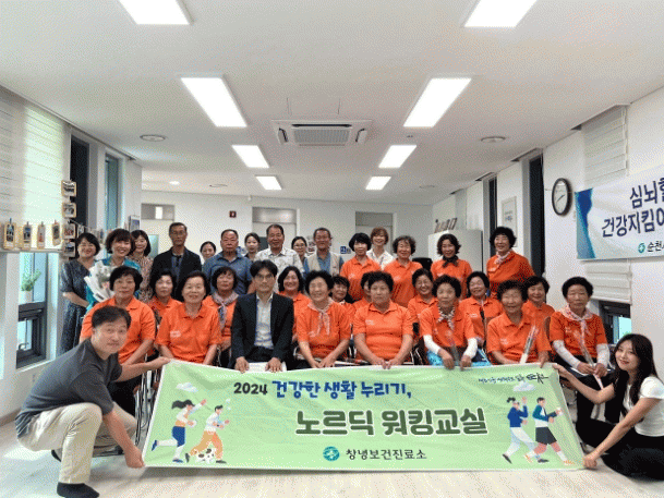[¹Ìµð¾îÀü³² ÀÓ¼º¿Ï ±âÀÚ]¼øÃµ½Ã´Â Áö³ 26ÀÏ, ³«¾È¸é â³çº¸°ÇÁø·á¼Ò¿¡¼ ¸¶À» ÁֹεéÀ» ´ë»óÀ¸·Î ÁøÇàÇÑ ¡®ICT ±â¹Ý À£´Ï½º ³ë¸£µñ¿öÅ·±³½Ç¡¯ÀÇ ¼º°øÀûÀÎ ¸¶¹«¸®¿Í ÇÔ²² ¼ö·á½ÄÀ» °¡Á³´Ù°í ¹àÇû´Ù. ³ë¸£µñ ¿öÅ·(Nordic Walking)Àº µÎ ¡¦